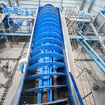 螺旋洗砂機用水量不大,砂子和水占比約1:1或1:1.5,使用過的污水經過進一步處理后可重復利用。