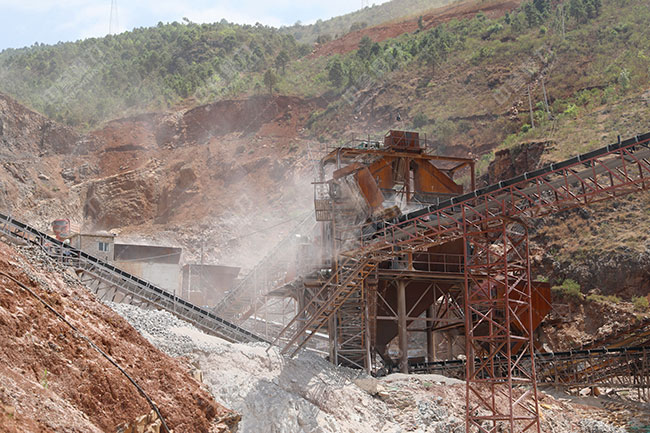 篩分單元:在毛石含泥量較大時,應調大棒條給料機棒條間距,提高篩分效率,進入鄂破的毛料含泥量達標。棒條給料機篩下物料經土篩篩選回收可使用細毛石。