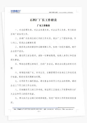 (1)全面負責石子廠管理工作,確保生產、安全、環保等各項工作順利進行;