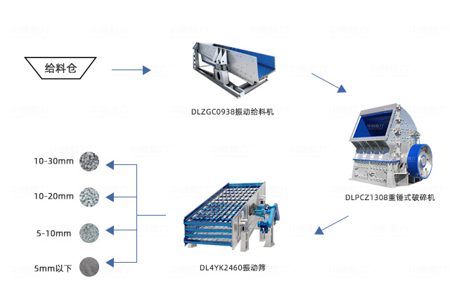 采用重型錘式破碎機的碎石生產線,適用于石灰石、青石、建筑垃圾等中低硬度物料,可以實現一次破碎成型,相比傳統“鄂破+反擊破”方案投資少,大概需要投資30-50萬左右。