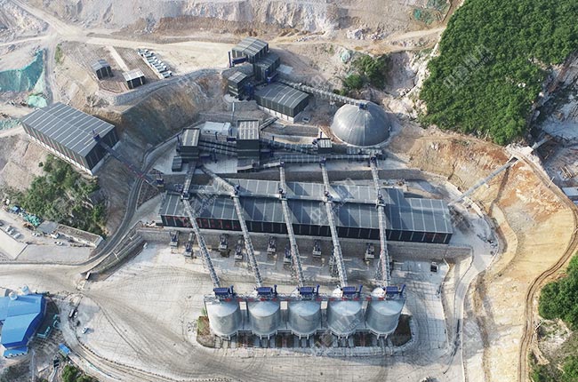 以下配置方案適用于石灰石、白云石、煤矸石等中等硬度的巖石物料,采用兩端一閉工藝方式,前期投資低,出料可調(diào)、成品粒型好、針片狀含量低。