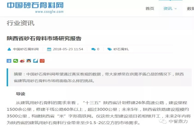 根據(jù)中砂石骨料網(wǎng)新的《陜西省砂石骨料市場研究報告》,“十三五”陜西省僅大型建設(shè)項目相繼開工,未來2年內(nèi)將為陜西省的建筑用砂石骨料行業(yè)帶來至少1.5-2億立方的市場需求。與此2018年4月8日,陜西省土資源廳再次下發(fā)《陜西省土資源廳關(guān)于進一步采取措施保障石料市場供應的通知》,指出西安、渭南,指出兩市砂石供應仍有較大缺口。
