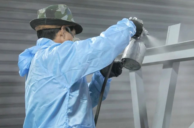 很多人都知道,噴漆崗位是一個辛苦、性很高的工種。由于環保及產品質量的要求,噴漆時不能有空氣對流及灰塵,所以噴漆房都是封閉設計的。尤其是炎炎夏日,加上四周射燈照射,噴漆房的溫度經常高達50-60度。一天工作下來,身上的工作服不知道要被汗水濕透多少次。