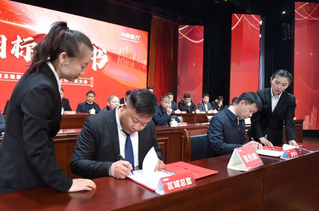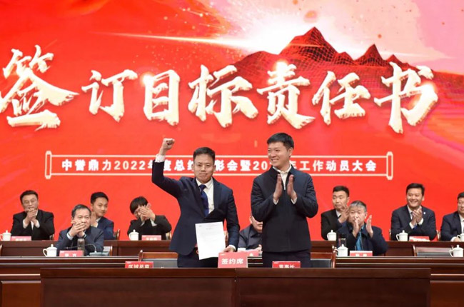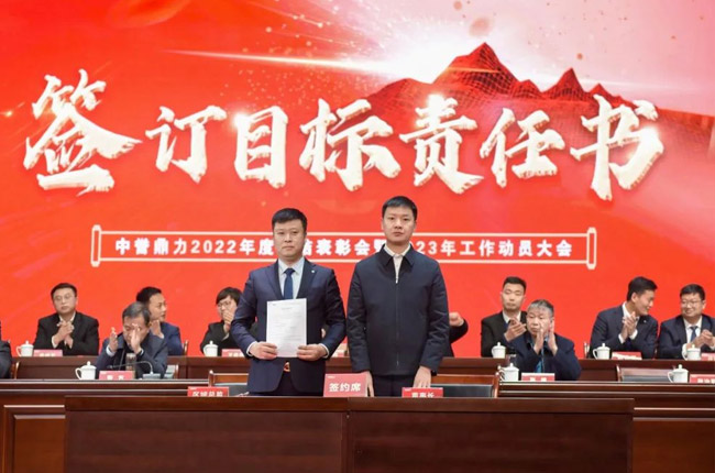 新的任命書下發以后,中譽鼎力各區域銷售負責人與張治民董事長一起簽訂銷售目標責任書,為2023年銷售服務工作的開展表決心、振士氣、強信心。