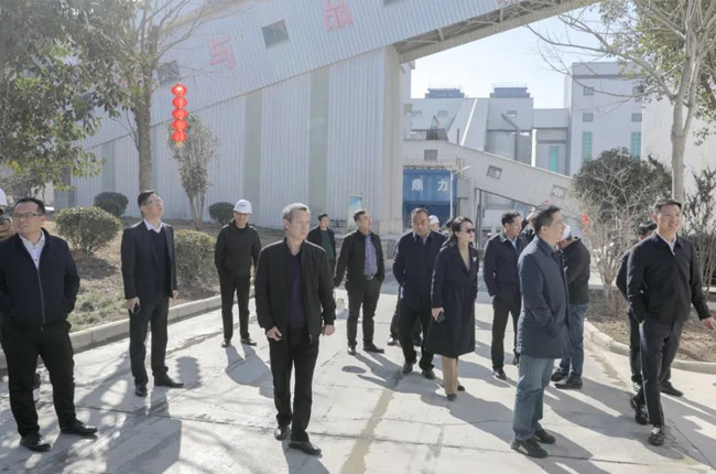 接著,考察團一行來到由中譽鼎力投資建設的“四位一體”循環建材產業園項目實踐基地——衛輝市遠大環保公司。深入了解中譽鼎力的環保生產工藝和智能管理模式。