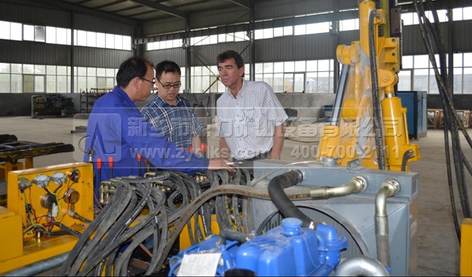 Colin 和 Craigo要為其公司選購能同時左右平移及左右偏移角度的鉆機設備,其之前已準備購買德的某種鉆機,但終因其高額的價格而退避三舍,為此他們來到中尋找類似德鉆機的廠家。在參觀廠房及鉆機廠并親眼看到鉆機運行后,客戶表現出了大的好奇和興趣,并與工程師交流了一些技術問題和要求。得到滿意的回答后進而與外貿經理溝通具體的合作事宜。