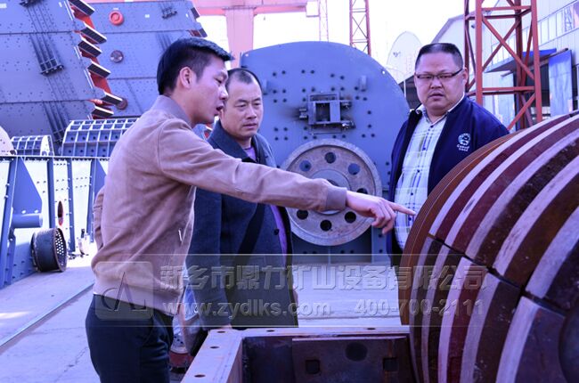 在中譽(yù)鼎力廠區(qū)對(duì)我們公司設(shè)備進(jìn)行了詳細(xì)考察,為了方便客戶使用設(shè)備及提高成品料質(zhì)量,我們公司采取了錘式破碎機(jī)護(hù)圈、振動(dòng)篩標(biāo)尺調(diào)節(jié)等多項(xiàng)設(shè)計(jì),贏得了在場客戶的贊賞。