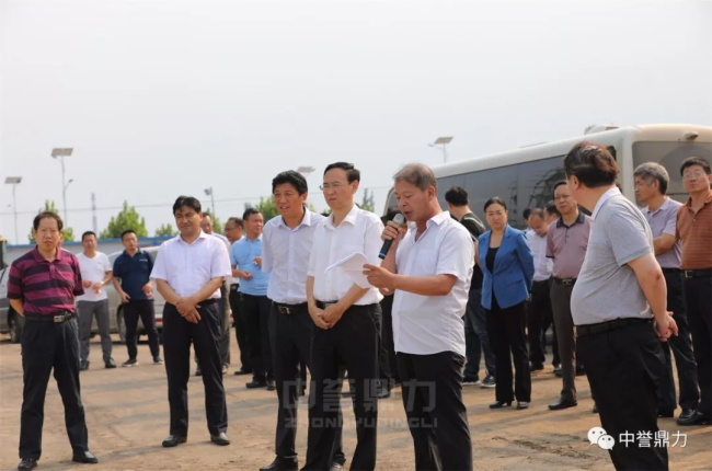 2017年7月20日,新鄉市委書記張偉一行在衛輝市委書記梁常運、衛輝市人大常委會主任王生群、衛輝市政協主席田貞等導的陪同下,觀摩中譽鼎力智能裝備有限公司項目建設現場。