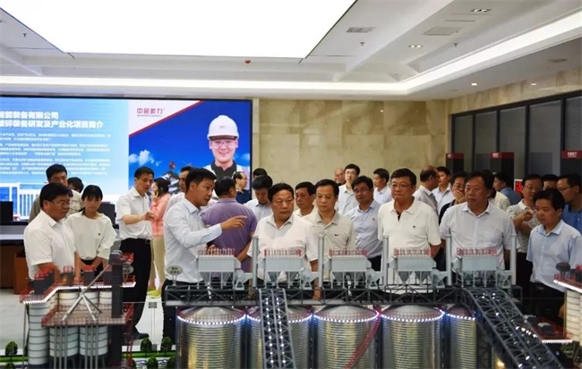 7月25日下午,新鄉市委副書記、市長王登喜帶市市直局委、縣級導干部蒞臨中譽鼎力調研,衛輝市市長范士富及衛輝市環保局、科工信局、發改委等相關部門負責人隨同觀摩。河南中譽鼎力智能裝備有限公司董事長張治民、副總經理原文秋等人現場接待,并匯報公司各項情況。