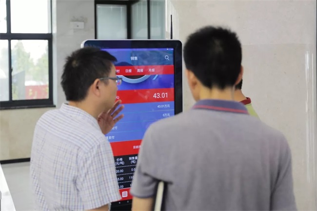 在公司智能化展示,原陽縣考察團(tuán)導(dǎo)一同觀看了中譽(yù)鼎力企業(yè)宣傳片,張治民董事長為大家詳細(xì)講解了中譽(yù)鼎力五位一體循環(huán)建材產(chǎn)業(yè)園項(xiàng)目,并現(xiàn)場演示了由中譽(yù)鼎力自主研發(fā)的礦山易購APP的具體應(yīng)用操作。
