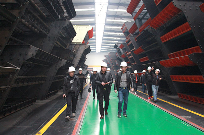 考察團先來到中譽鼎力智能裝備有限公司新廠區(qū),參觀了智能化一體生產(chǎn)車間,對中譽鼎力的設(shè)備制造情況進行了了解。