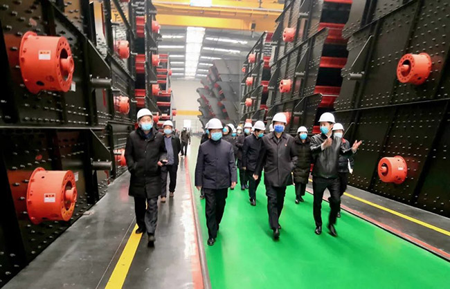 在中譽(yù)鼎力智能裝備公司廠區(qū),張治民董事長(zhǎng)向各位導(dǎo)詳細(xì)匯報(bào)公司復(fù)工復(fù)產(chǎn)情況,并介紹中譽(yù)鼎力“五位一體”循環(huán)建材產(chǎn)業(yè)園及一體化智能生產(chǎn)車(chē)間。