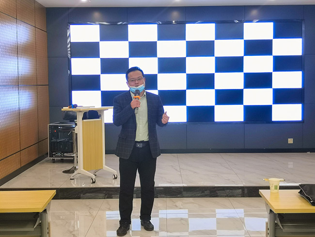 交流會議上,楊乾總經理為來訪導和企業代表詳細介紹了中譽鼎力的發展歷程、轉型之路,并就現階段取得的智能化研發成果進行了深入的講解。呂建新局長對中譽鼎力主動適應市場需求、積轉變企業發展思路、不斷推動智能化轉型升級的做法表示贊賞和認可,稱值得在輝縣市大力推廣。