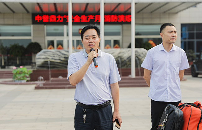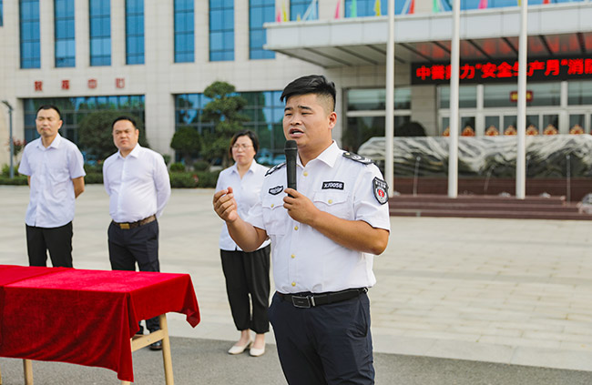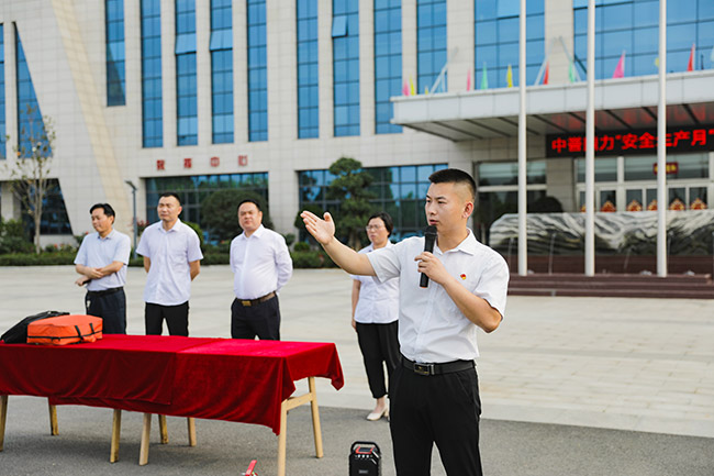 此次消防演練活動特邀河南省消協興盾防火教官張蘭濤進行消防安知識實踐與理論培訓,河南中譽鼎力智能裝備有限公司常務副總經理張志宇、行政副總經理崔玉清、生產副總經理李、營銷副總經理王春燕出席現場。
