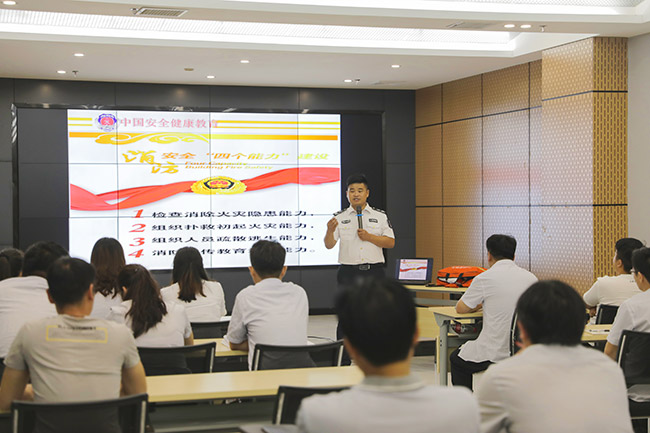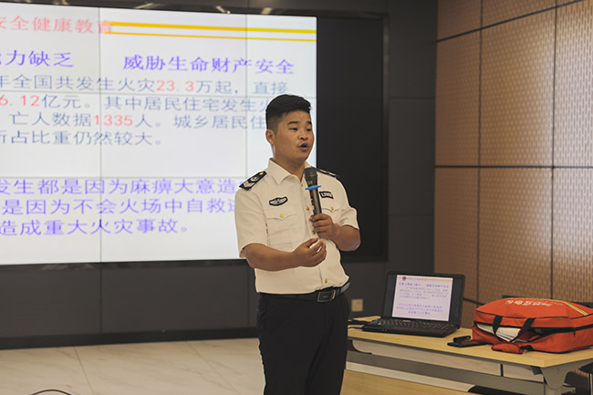 在之后的消防安知識培訓講座上,張蘭濤教官從實際案例出發,圍繞消防安“四個能力建設”、應急處置程序和逃生技巧等內容進行了詳細而具體的講解。