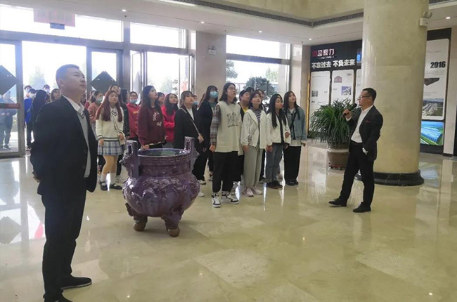 10月19日上午,在新鄉學院經濟學院副院長郭玉杰、衛輝市商務局副局長翟愛民的帶下,新鄉學院經濟學院60名大學生到中譽鼎力進行參觀交流。