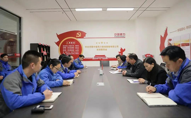 中譽(yù)鼎力黨建指導(dǎo)員王士存,新鄉(xiāng)市中譽(yù)鼎力軟件科技股份有限公司總經(jīng)理?xiàng)钋幽现凶u(yù)鼎力智能裝備有限公司行政副總經(jīng)理崔玉清、營銷副總經(jīng)理王春燕、生產(chǎn)副總經(jīng)理李、黨支部書記、企管部長吳澤朋及各部門20余位黨員代表參加會(huì)議。