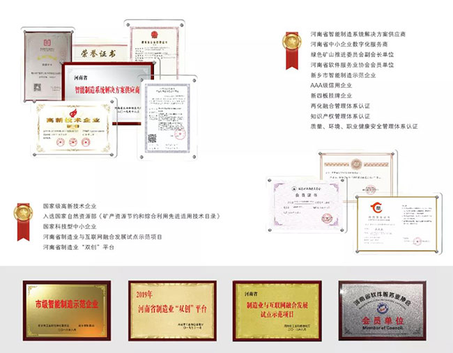 新鄉市中譽鼎力軟件科技股份有限公司自2017年6月成立以來,專注于礦山行業智能管理解決方案,憑借的技術人才、豐富的行業經驗、扎實的研發生產、科學的管理體系等多方面的優勢,不斷推動技術創新,在日趨激烈的市場競爭中快速前行,榮獲家級高新技術企業、河南省工程技術研究、河南省制造業與互聯網融合試點項目、河南省制造業“雙創”平臺、河南省智能制造系統解決方案供應商、新鄉市智能制造企業、AAA級信用企業等數十項稱號,并通過ISO9001質量管理體系、知識產權管理體系認證。