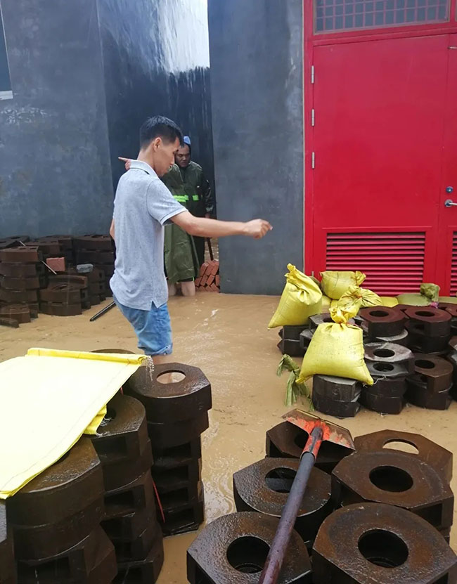 廠區降水同樣嚴重,在崗的鼎力人已盡力守住車間倉庫