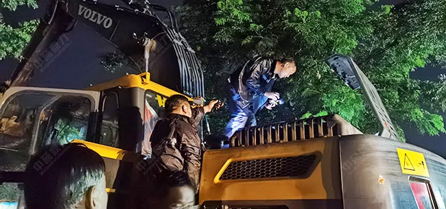 7月27日晚,排水槽施工現場,施工人員正在進行車輛檢查