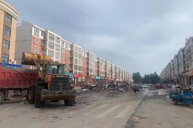 8月5日下午,河南中譽鼎力智能裝備有限公司董事長張治民主動停止公司運輸業務,親自帶公司150名員工、15輛鏟車、30輛清運車無償支援家鄉衛輝災后垃圾及時清運工作,已有多條街道恢復清潔,并將稱參與為惠城區的垃圾清運工作。