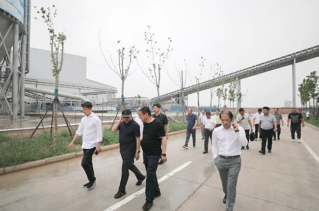 考察團一行先來到由中譽鼎力EPCO承建的衛輝市融創實業有限公司時產3000噸砂石骨料生產線,詳細了解其環保化生產、化運營和智能化管理的砂石骨料生產模式,并聽取該項目礦山生態修復及環境治理相關情況。