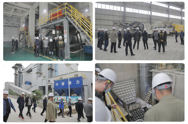 然后,考察團一行前往中譽鼎力投資建設的多位一體循環建材產業園項目——衛輝市藍天環保材料有限公司“四位一體”大型建材項目實地參觀。參觀期間,考察團成員不僅對該項目所具備的綠色、智能、集約、等優勢有了進一步認識,并在生產現場一睹中譽鼎力履帶式錘破移動破碎站的風采。
