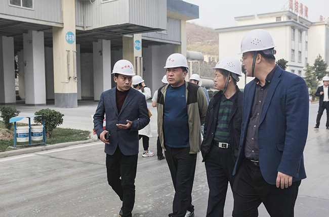 之后,考察團一行前往中譽鼎力投資建設的多位一體循環建材產業園項目——衛輝市藍天環保材料有限公司“四位一體”大型建材項目實地參觀。