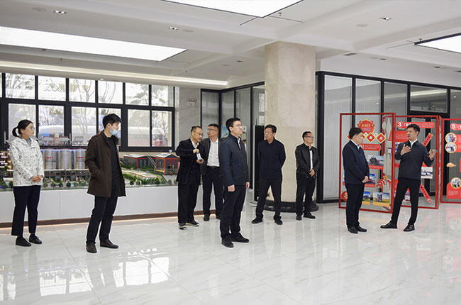 隨后,調研導一行來到中譽鼎力智能化展示中心,參觀了公司多位一體綠色循環建材產業園項目沙盤,并觀看相關宣傳片,對中譽鼎力主營業務、近年來發展情況等有了進一步了解。