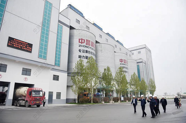 之后,胡會長一行來到由中譽鼎力投資建設的多位一體循環建材產業園項目實踐基地——衛輝市藍天環保材料有限公司四位一體建材項目進行實地調研,對該項目的環保生產工藝、智能管理方式等建材生產管理模式進行了詳細的了解。