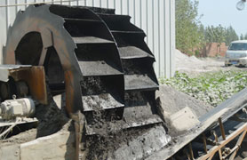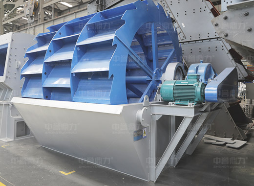 洗砂機工作時,電機通過三角帶、減速機、齒輪減速后帶動葉輪緩慢轉動,砂石由給料槽進入洗槽中,在葉輪的帶動下翻滾,并互相研磨,除去覆蓋砂石表面的雜質,同時破壞包覆砂粒的水汽層,以利于脫水;同時加水,形成強大水流,及時將雜質及比重小的異物帶走,并從溢出口洗槽排出,完成清洗作用。干凈的砂石由葉片帶走,后砂石從旋轉的葉輪倒入出料槽,完成砂石的清洗作用。