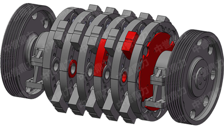 八路錘軸孔,四路備用,機體設觀察門,方便觀察運轉情況,配備液壓抽軸器,方便更換錘頭、錘軸,件均采用螺栓緊固,拆卸方便,減少維護時間成本。