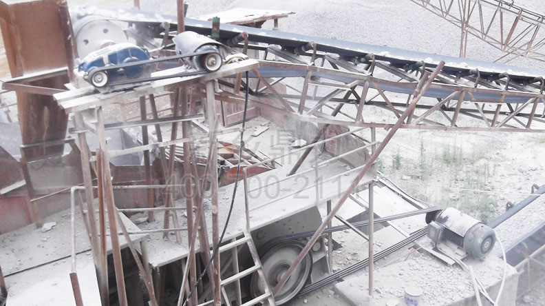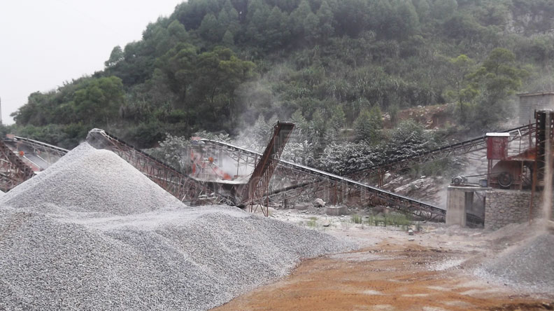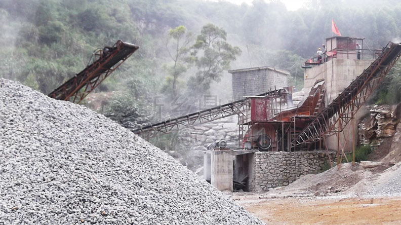 這條時產300噸的石灰石碎石生產線流程:先石料經粗破設備進行初步破碎,然后再將產出的物料經由細碎設備,進行再次的破碎,經過振動篩篩分成兩種物料,一部分篩分成可以滿足石子大小粒度的成品料,另一部分可以篩分成符合制砂要求的成品料,然后制成成品砂進行銷售。
