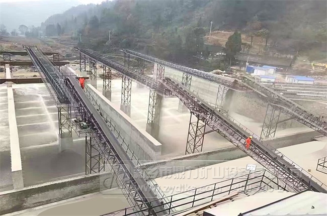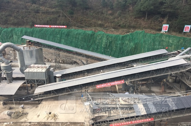 上圖為貴州遵義同興源建材時(shí)產(chǎn)1000噸骨料生產(chǎn)線生產(chǎn)現(xiàn)場(chǎng),排列整齊的皮帶輸送帶有序的運(yùn)送骨料,在一些皮帶輸送機(jī)密集的區(qū)域,設(shè)置了脈沖袋式除塵器,也是由中譽(yù)鼎力研發(fā)的,將設(shè)備安裝在基臺(tái)上方,占地面積小,節(jié)省基建投資。