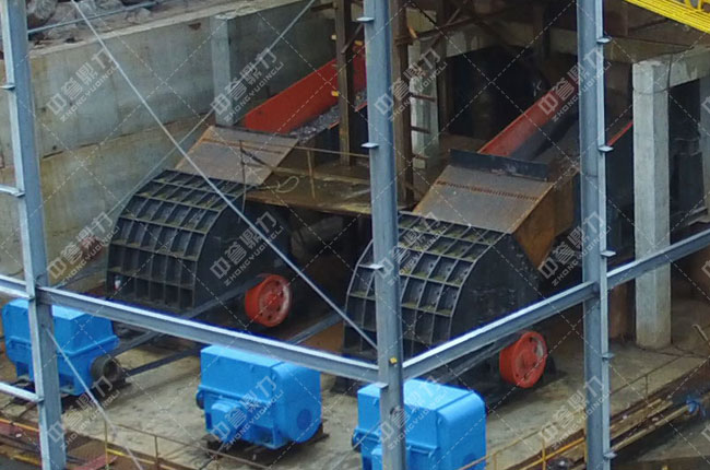 大塊石料經ZGC2050振動給料機均勻、連續的送到PCZ1620重錘破進行破碎,破碎后的物料被送到中轉料倉,再由兩臺ZGC2038給料機送到兩臺PC1220整形錘破進行整形加工,經過再次加工的物料被輸送到一組3臺3YKZ3070振動篩進行篩分,篩分出1-3以下的石料、土石粉和一部分回料,1-3以下的料被輸送到下一組3臺3YKZ3070振動篩進行再次篩分,回料被返料帶返回整形錘破進行再次破碎,形成一個閉路循環,終篩分出1-3/1-2/0-5和石粉四種成品料。
