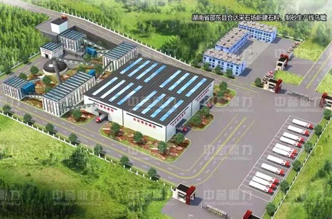 該項目占地約70畝,由合達建材石料有限公司投資,總投資約5000萬元,項目位于湖南省邵陽市邵東縣,由中譽鼎力承建生產(chǎn)線、提供礦山設(shè)備及智能系統(tǒng)。主要設(shè)備配置有DLZGC2050振動給料機、DLPCZ1620重型錘式反擊破碎機、DLPC1220整形式破碎機、DLZSJ1213雙轉(zhuǎn)子制砂機、DL3YKQ2460振動篩等,設(shè)計產(chǎn)能為時產(chǎn)1000噸骨料、200噸機制砂(年產(chǎn)300萬噸砂石骨料),出5種成品料,包括0-5mm、5-10mm、10-20mm、20-31.5mm和砂