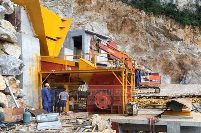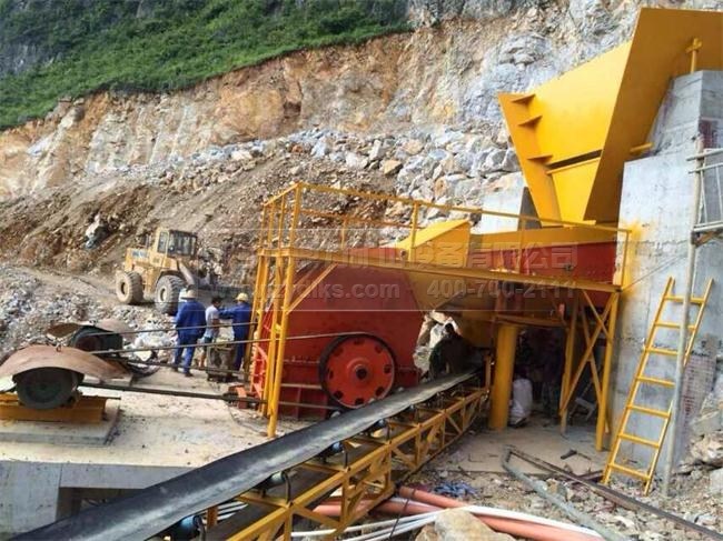 此條生產(chǎn)線時產(chǎn)300噸;基本配置:PCZ1512重型錘式破碎機、ZG1238給料機、2YK1860振動篩×3臺等 投資優(yōu)勢:重型破碎機可代替?zhèn)鹘y(tǒng)的顎式破碎機和反擊式破碎機兩級破碎,實現(xiàn)“一破成型”的破碎效果,為客戶節(jié)省大量成本。投資小,回收成本快。