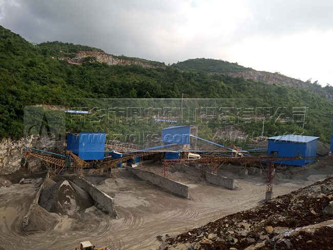 針對這種情況我們公司為其設計改進流程,這條時產700噸大型石料生產線采用頭破—除泥破碎—整形破碎—制砂的破碎工藝,并且及時根據市場的需要來調整對應的出料粒度,生產的成品料含泥含量低、粒形均勻。