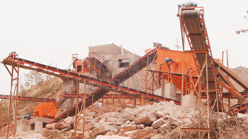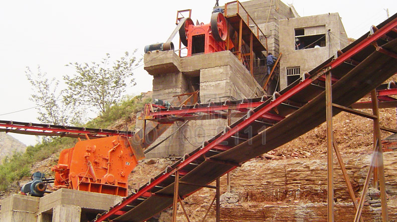 利用地形落差,經過顎式破碎機處理過的石料經過滑道直接進入反擊破進行整形,不僅節省了占地面積,還節省了這個環節輸送設備的投資,日常生產中用電成本也比較低。