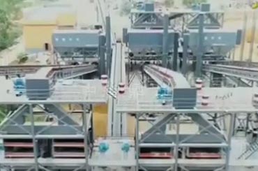 砂石生產線中排隊等待拉料的貨車現場視頻