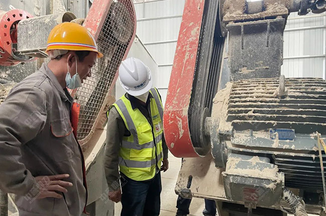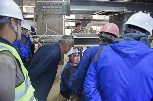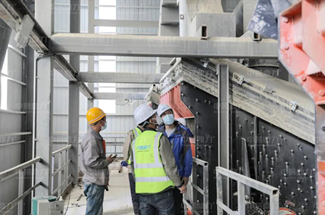 聽完項(xiàng)目負(fù)責(zé)人尚總對項(xiàng)目的情況介紹后,售后服務(wù)萬里行團(tuán)隊(duì)一行來到時(shí)產(chǎn)1000噸石子生產(chǎn)線現(xiàn)場,對設(shè)備使用情況進(jìn)行詳細(xì)排查與維修。