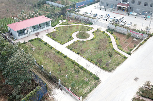 生產線負責人朱總告訴我們,這條時產1500噸環保型砂石生產線設備為化花園式廠區,滿目綠蔭、鳥語花香、干凈整潔,地面部做硬化處理。