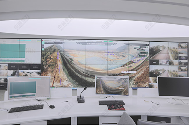 項目負責人張總告訴我們,隨著5G通信技術的高速發展,徐州明陽石料有限公司積依托科技公司、大專院校和電信企業建設5G智慧礦山大數據平臺,目前已完成5G通信基站、大數據交換平臺建設,實現了礦山挖裝、運輸、監測等環節的遠程操控。在5G智慧礦山指揮,分別設置有景云眼實戰指揮系統、中控操作臺、VR體驗區、安教育警示區、企業沙盤等板塊。