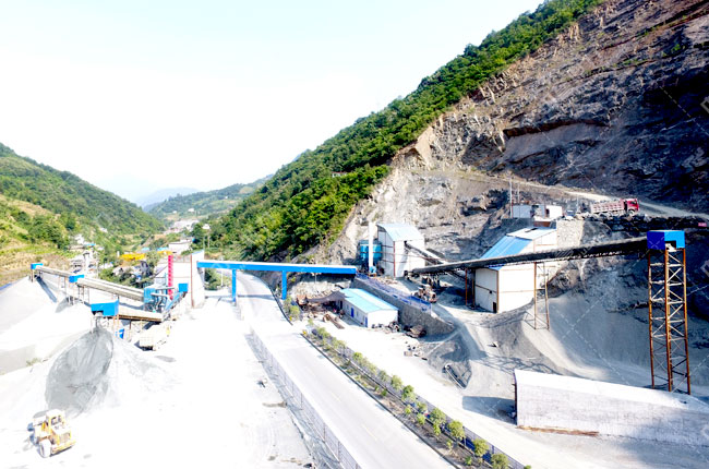破碎方法:ZSW600×180震動喂料機+PE1500×1800顎式破碎機機+中間料堆+PF1820反擊式破碎機(2臺)+2YK3072礦山振動篩(4臺)+傳送機(若干)